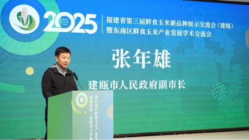 建瓯市人民政府副市长张年雄在致辞中说,建瓯市依托优越的生态自然条件,已发展成为中国东部鲜食玉米的核心产区。目前建瓯全年鲜食玉米种植面积达12万亩,年产量15万吨,鲜食玉米已成为建瓯市稳定粮食生产、农民增收致富的“黄金产业”。
