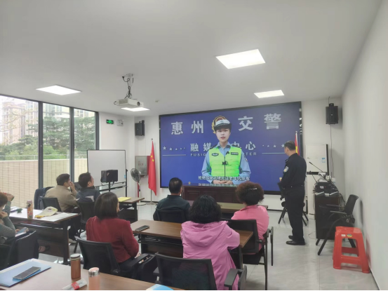 为进一步增强社区群众交通安全意识,打造安全文明、畅通有序的道路交通环境,11月19日,惠州市公安局交通管理支队江北大队组织民警深入到惠新社区,开展交通安全警示教育会暨宣传活动,为社区干部群众送上针对性的交通安全知识。